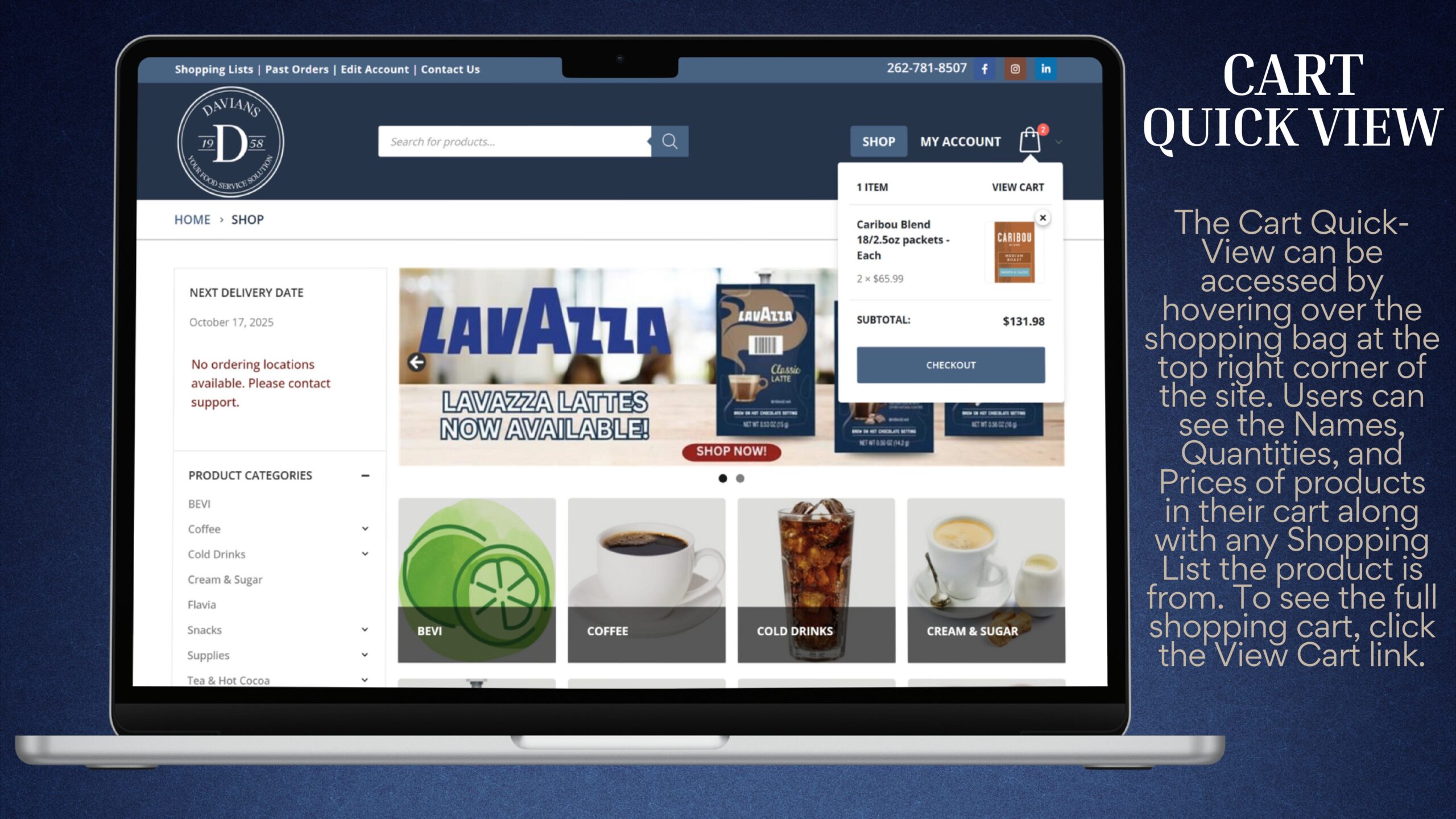 HelpJohnny Hickey2025-10-17T11:02:14-04:00 Davians Online Ordering Walkthrough Utilizing Shopping Lists